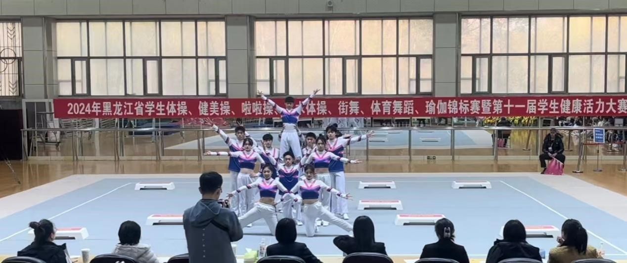 各高校的甲组、丙组、乙组各项表演精彩纷呈。队员们身着鲜艳夺目、设计独特的服装,仿佛一群灵动的精灵。他们脸上洋溢着自信满满的笑容,眼神中透露出坚定与执着,动作整齐划一,充满活力。每一个步伐都精准到位,每一次跳跃都充满力量。每一次高难度的动作中,队员们也将优美的舞姿与刚劲的动作完美结合,展现出了别样的艺术魅力。哈尔滨师范大学代表队更凭借时尚新颖的服装,独具匠心的动作编排和完美的团队配合以及充满创意和激情的高难度动作,充分展现了师大健美操队员的无限活力。
