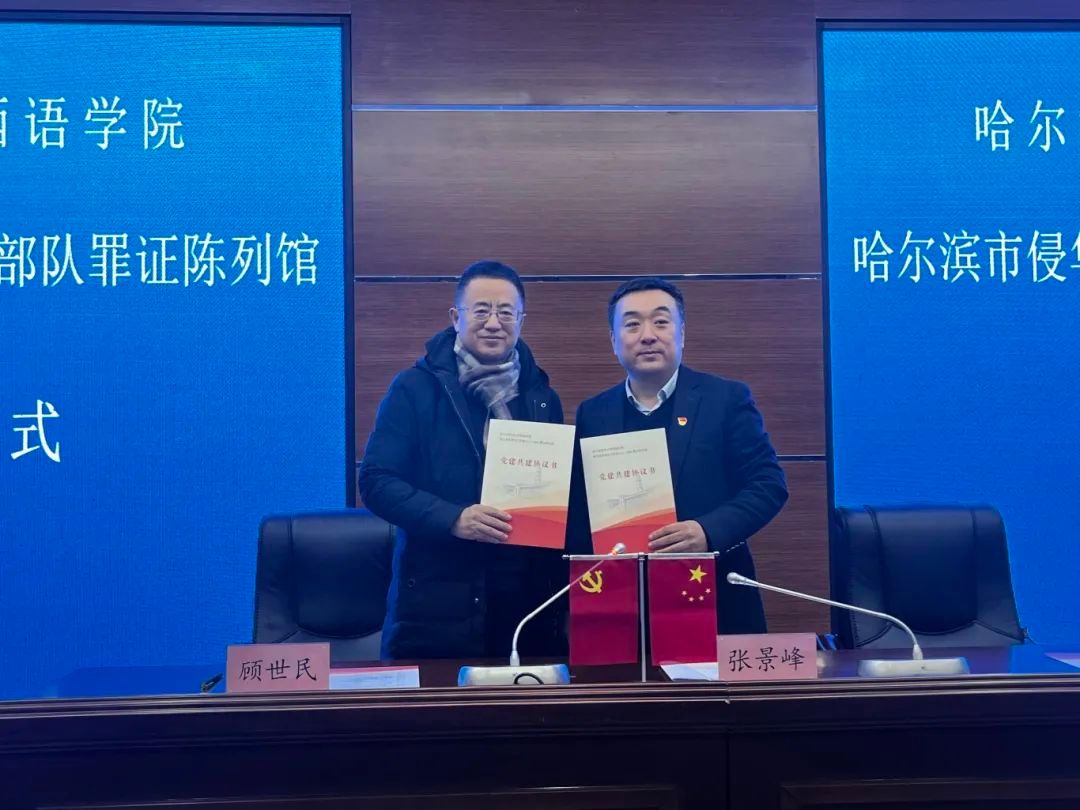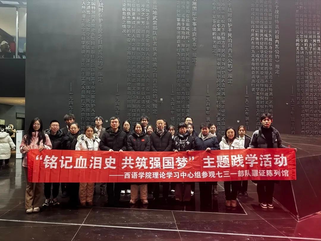 为深入贯彻落实新时代党的建设总要求,进一步探索党建创新,11月28日下午,西语学院与哈尔滨市侵华日军第七三一部队罪证陈列馆开展党建共建活动。陈列馆党支部书记张景峰、副馆长张阳,西语学院理论学习中心组成员参加活动。