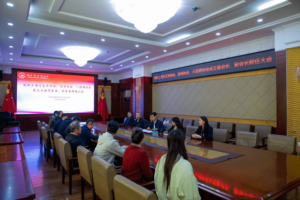 4月9日下午,校工会在松北校区行知楼107会议室举行了教职工语言艺术协会、足球协会、八段锦协会成立大会暨会长、副会长聘任大会。教职工文体协会会长、副会长及工会全体同志参加会议。工会副主席李立平主持会议。