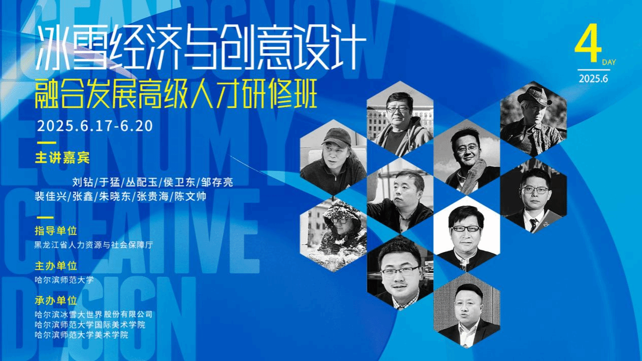 本次研修班邀请了哈尔滨冰雪大世界设计研发部部长、第九届哈尔滨亚冬会火炬手丛配玉,哈尔滨市太阳岛风景区资产经营有限公司冰雪发展事业办主任、省当代艺术研究院冰版画院副院长侯卫东,黑龙江省设计集团有限公司创意设计研究院执行院长、省创意设计专家库首批入库专家邹存亮,哈尔滨师范大学美术学院雕塑系主任、省美术家协会雕塑艺术委员会副主任于猛,哈尔滨师范大学传媒学院副教授、省重点智库专家裴佳兴,黑龙江东方学院冰雪艺术中心主任教授、省冰雪艺术与冰版画研究实习基地主任朱晓东,哈尔滨师范大学冰雪创意设计实践中心主任、国际美术学院雕塑系主任张鑫,省冰雪产业研究院院长、国家体育总局冰雪体育产业专家张贵海,东北林业大学教授、教育部长江学者青年学者陈文帅担任授课教师。在一周时间里,各位专家围绕冰雪经济与创意设计融合发展这一主题,与58名线下学员、100名线上学员进行深入学习与交流。