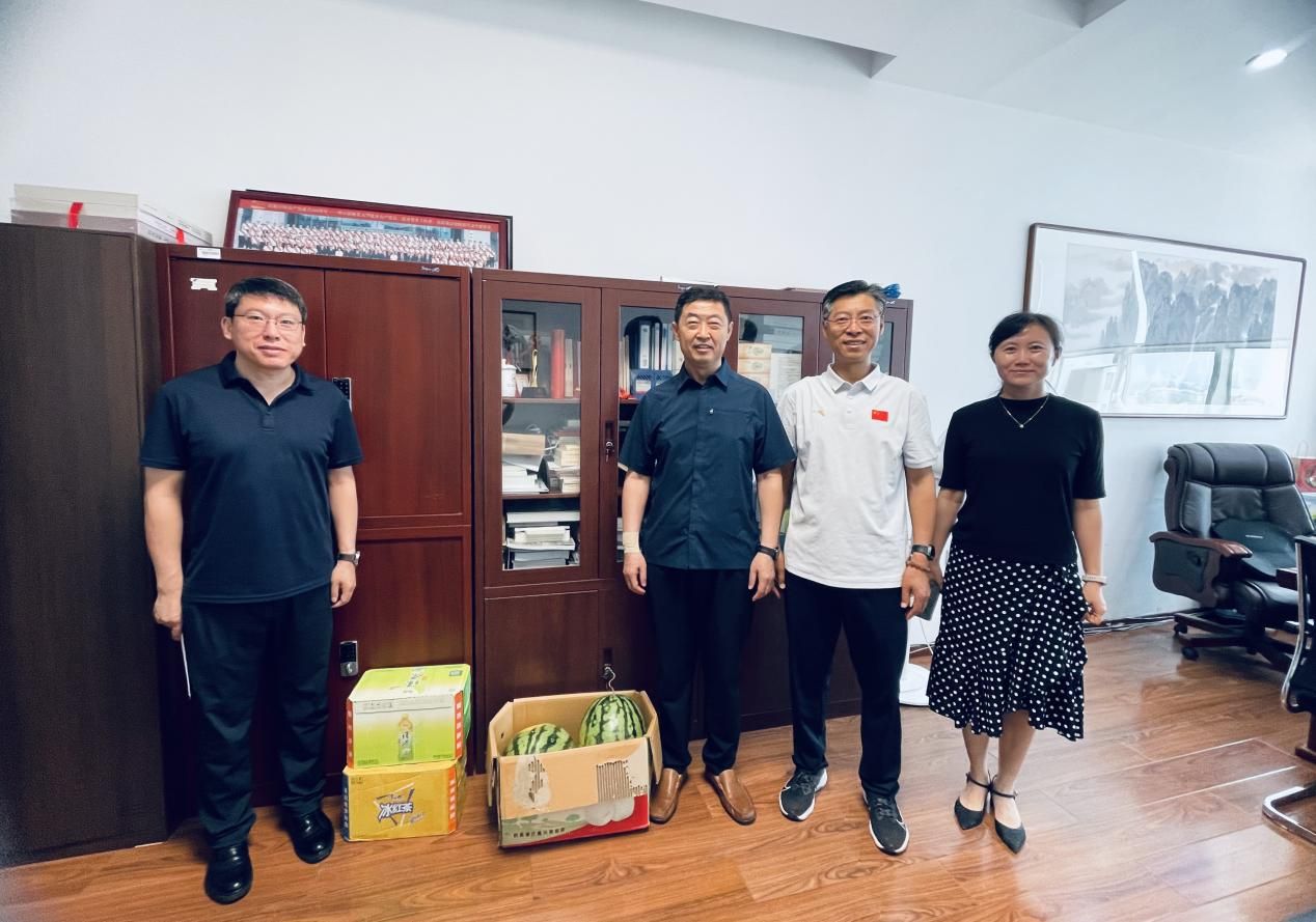 7月17日,校工会组织开展 “夏送清凉” 慰问活动,为暑期坚守岗位的一线教职工送去防暑降温物资与深切关怀。校工会常务副主席杨世君带队,先后走访主校区和江南校区,向高温下默默耕耘的教职工们致以诚挚的问候与敬意。