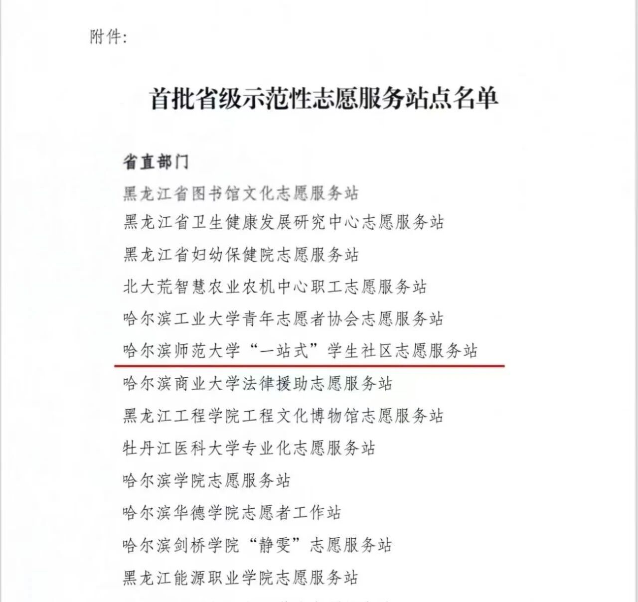 近日,由黑龙江省委社会工作部组织开展的黑龙江省首批省级示范性志愿服务站点最终评选结果公布,经申报推荐、材料审核、综合评审等多轮严格遴选,哈尔滨师范大学“一站式”学生社区志愿服务站成功入选黑龙江省首批省级示范性志愿服务站点。