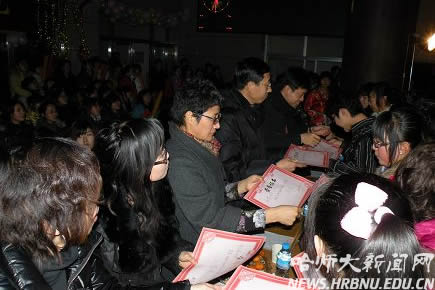 为总结本学期的各项活动,数学科学学院于12月14日举办了学院活动颁奖晚会。学院党委书记于占才、院长宋文、副书记幺焕民等老师和各院系学生会主席出席了活动,学院07级团委、学生会成员和08级全体学生参加了活动。