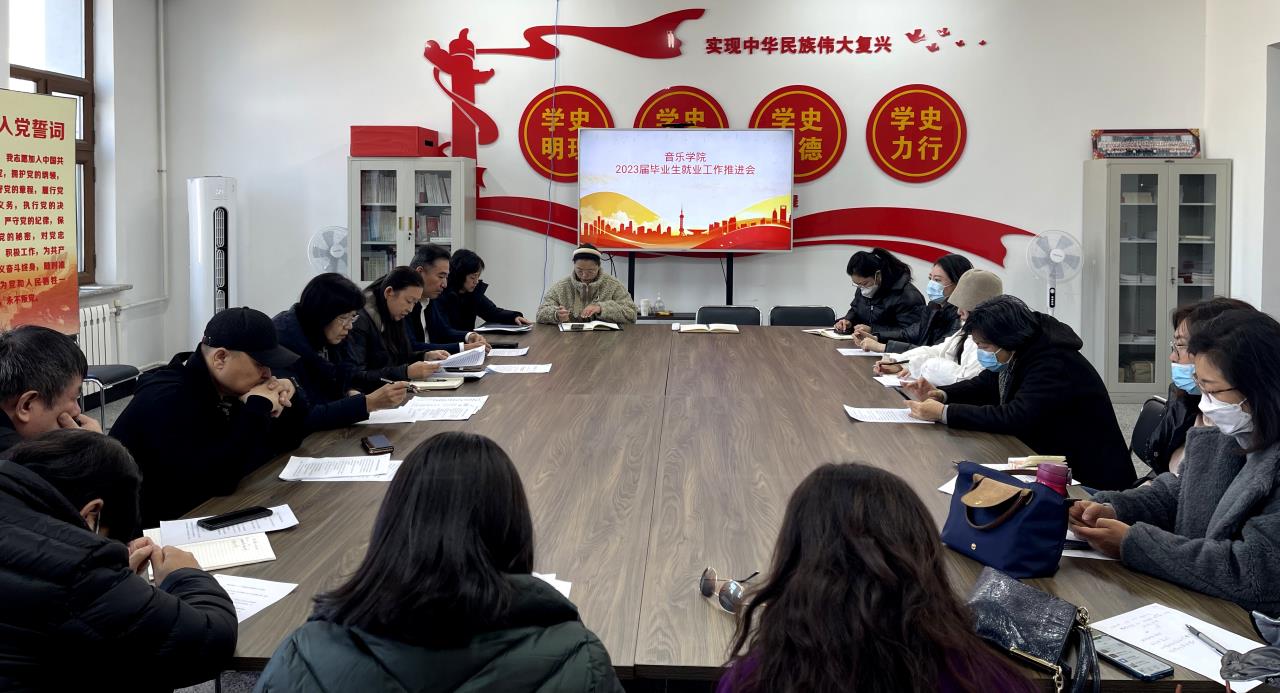 (王宇晨/文)为全面落实2023届全国普通高校毕业生就业创业工作网络视频会议精神及我校2023届毕业生就业工作第一次调度会精神,促进学院毕业生就业工作高质量发展,2月21日上午,音乐学院2023届毕业生就业工作推进会在艺术大厦B座209会议室召开。学院领导班子全体成员及各系、办主任参加会议,会议由音乐学院党委书记司红主持。