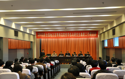 会上,天津师范大学副校长王延文教授做了题为《地方高师院校发展研究生教育面临的形势和策略思考》的报告,陕西师范大学研究生部荆峰副主任做了题为《全日制教育硕士教学实习的一些做法》的报告,南京师范大学研究生部副主任聂守平做了题为《研究生专业学位建设及培养机制改革的一些做法》的报告。他们的报告深刻地论述了新形势下,地方高等师范院校学位与研究生教育的任务,尤其是专业学位培养机制建设的紧迫性,研究生教育在科教强国和高教强省战略中重要作用。代表们针对研究生课程体系改革,研究生培养机制改革与发展方向,研究生德育工作等进行了热烈讨论,介绍了所在学校研究生教育创新、创新型人才的培养等方面的做法和经验。