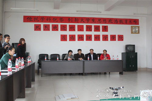 王为正在观看完表演后对“项目组”的工作表示充分认可,并对地理科学学院依托学科优势,加强大学生科学研究和创新实践能力所做出的工作表示充分肯定。他强调指出:基层学院是大学生思想政治工作和教学实践工作的重要平台和基础,希望与会各学院继续加强创新实践和学生思想政治工作,以优异的成绩迎接学校建校60周年庆典。