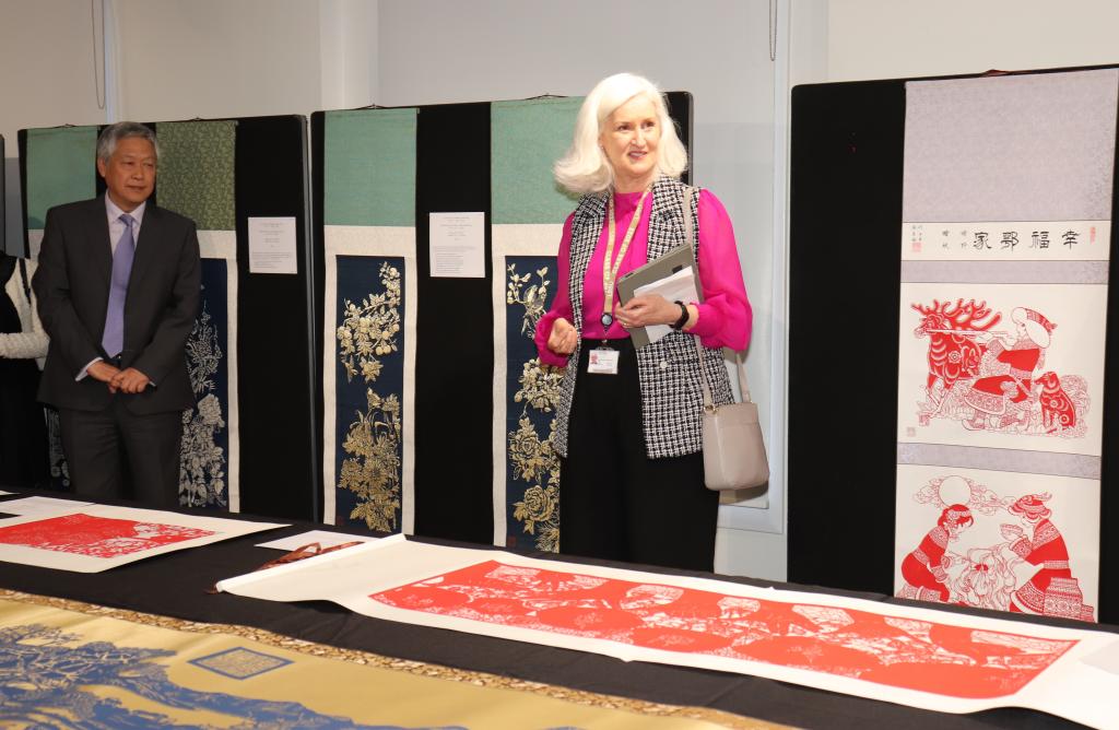 随后,本次艺术团代表哈尔滨师范大学美术学院闫海涛教授分享了她本人及其团队在剪刻艺术领域的经历,并向所有对剪刻艺术道路上给予帮助的老师和国际友人们表达了感谢,表示哈师大龙江剪刻团队将始终怀揣热情继续努力传承剪刻之美,为剪纸艺术注入更多精彩与活力!