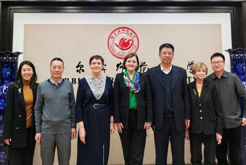 (殷宝媛/文)为进一步落实《中华人民共和国和俄罗斯联邦关于深化新时代全面战略协作伙伴关系的联合声明》精神,贯彻省委关于密切人文交流合作、贯彻教育向北开放战略的要求,加强中俄教育领域的交流与合作,搭建高起点、多领域的国际化学术交流平台,推动创新人才培养,11月27日,在学校国际交流合作处的支持下,教育科学学院与布拉戈维申斯克国立师范大学教育及心理系代表团进行合作意向会谈。布拉戈维申斯克国立师范大学教育及心理系代表团由副校长基利耶娃·娜塔莉娅·弗拉基米洛夫娜带队,参会人员包括格拉古佐娃·明奈努尔·阿赫梅特哈诺夫娜教授、卡尔纳乌赫·娜捷日达·瓦连京诺夫娜教授。教育科学学院、中俄教育比较研究中心主任相关负责同志参加了本次会谈。