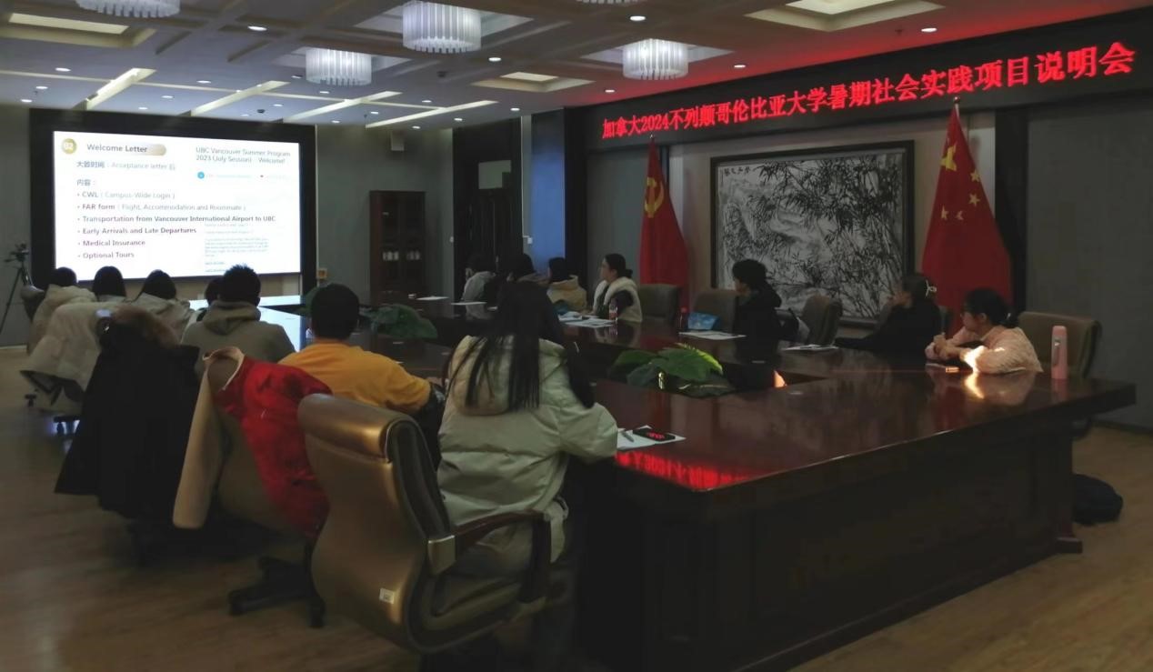 (盖雨鸥/文)12月19日下午,国际交流合作处于行知楼1015会议室举行哈师大2024年加拿大不列颠哥伦比亚大学暑期学生社会实践项目培训说明会,来自教育科学学院、西语学院、经济与管理学院等6个学院的14名本科生和硕士生参加了此次培训会,本次培训由国际交流合作处项目负责人盖雨鸥进行培训讲解。