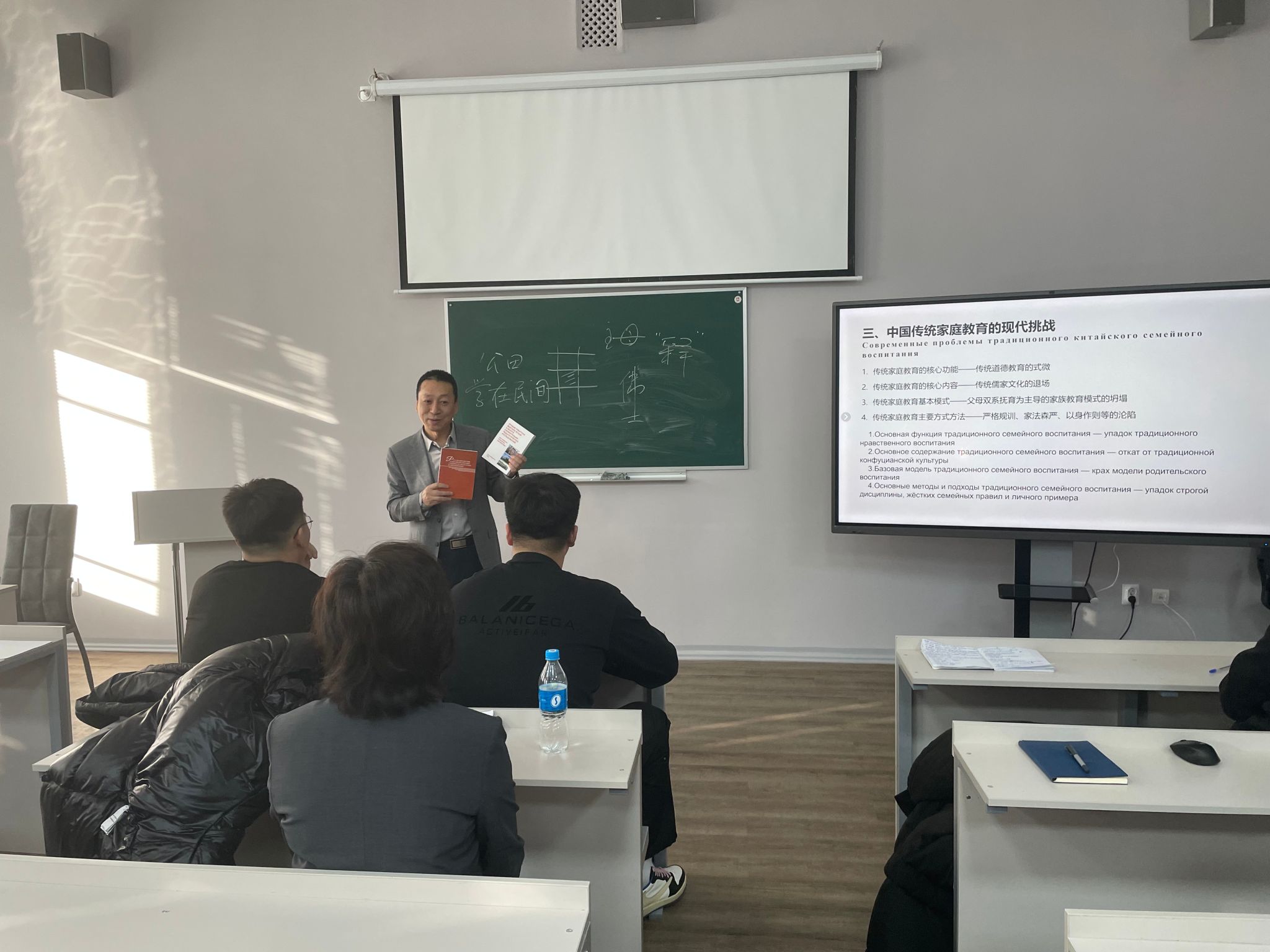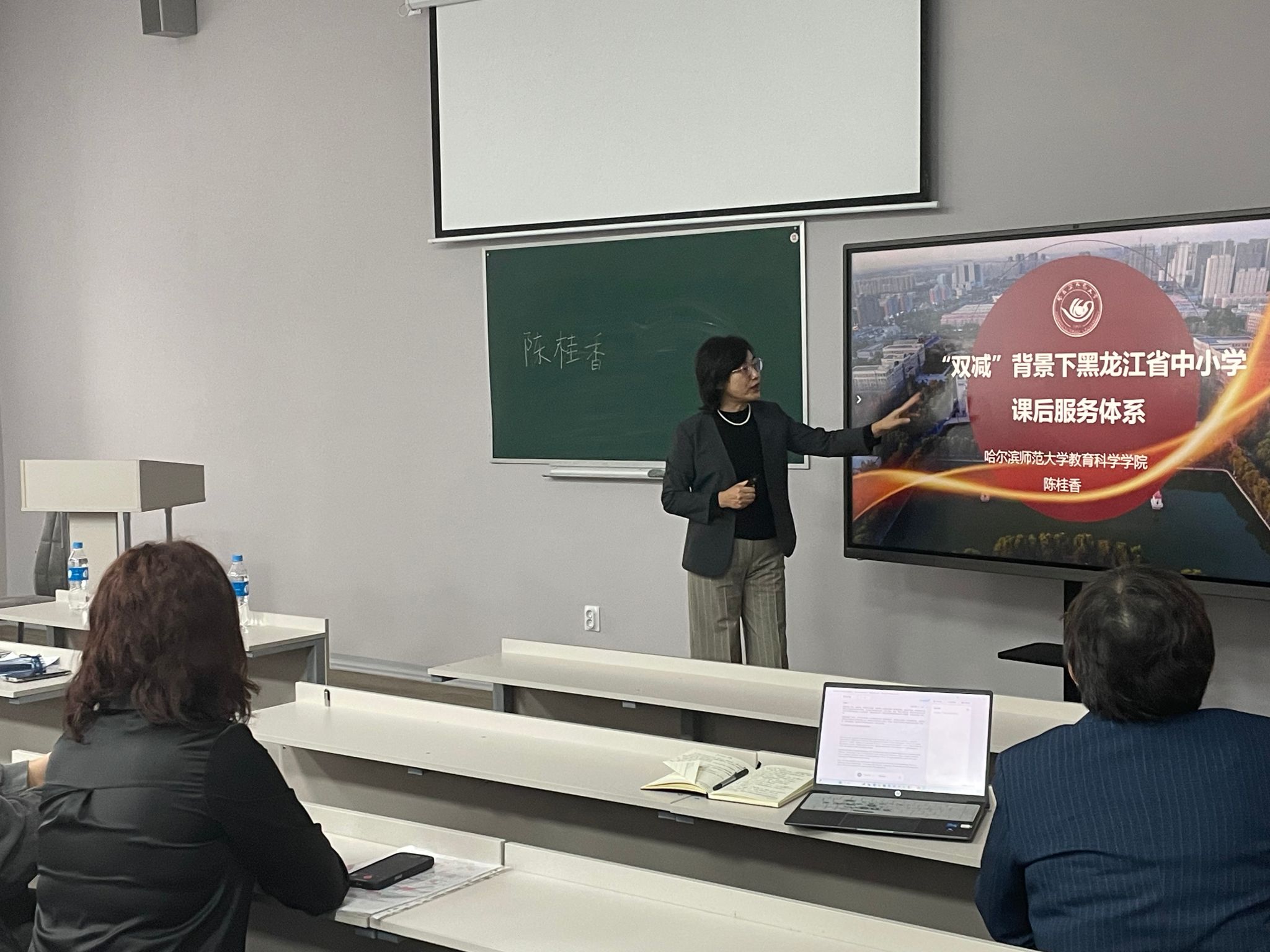 作为此次交流的核心内容,我校教育科学学院教授举行了三场专题讲座。陈云奔分别以《中国师范教育百年历程》和 《中国传统家庭教育》为题,系统梳理了中国教师教育体系的发展脉络与独特智慧,深刻阐释了家庭教育在中国文化语境中的核心价值,引发了俄方同仁的浓厚兴趣与热烈讨论。陈桂香教授则聚焦当前中国教育改革的焦点,作了题为《“双减”背景下黑龙江省中小学课后服务体系》的专题报告,详细介绍了政策背景、地方实践模式及成效评估,为俄方理解中国当代基础教育改革提供了鲜活样本。