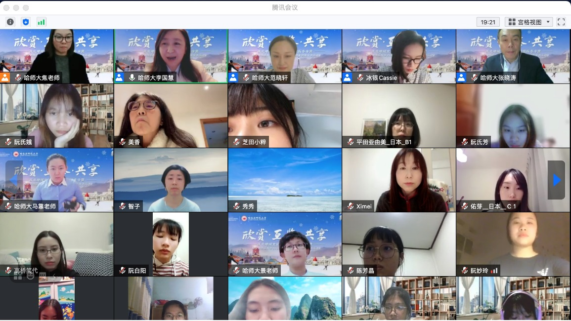 我校国际教育学院“欣赏 互鉴 共享”东北地域文化特色体验国际冬令营于12月6日开营,学院于北京时间18时30分在线上举行了开营仪式。国际教育学院院长张晓涛、副院长李国慧及授课教师代表、冬令营汉语志愿者、112名营员和相关工作人员参加了开营仪式。