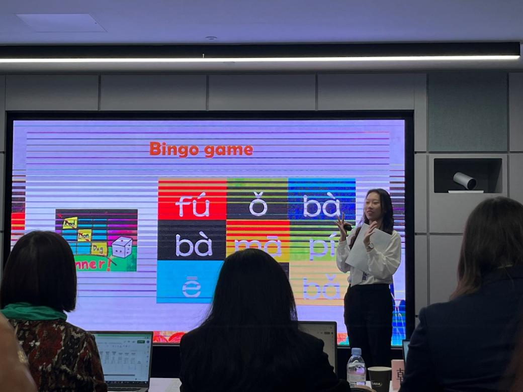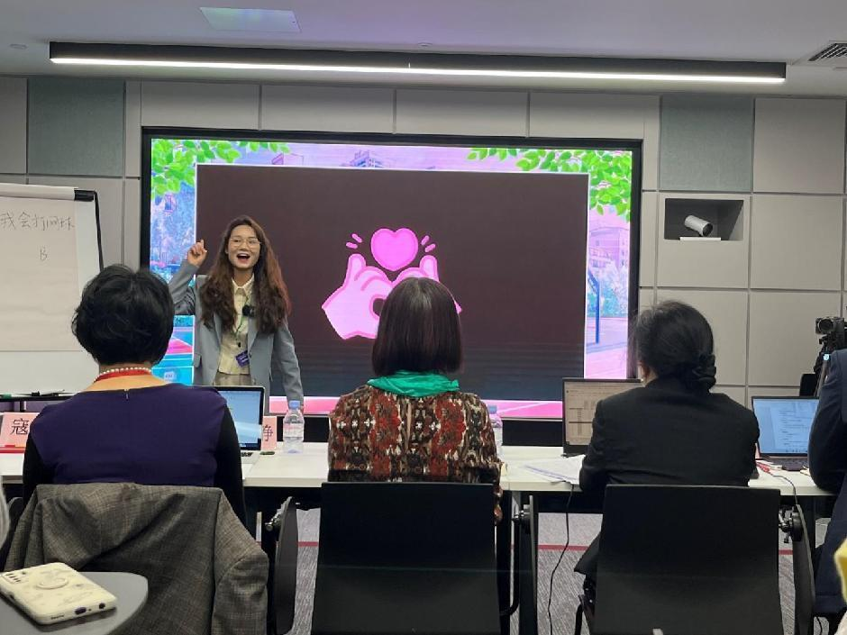 13号容永老师是最后一名参赛选手。容老师设计了很多有趣味性极强的游戏环节和真实的生活对话情景并重点练习了大量关于运动的词汇和句型。她利用丰富的数字化教学手段,成功吸引了学生们的注意力,从而提高了课堂的教学效果。容老师的教态十分自信和从容,感染力极强,展现了作为一名国际中文教师潮气蓬勃的精神面貌,给现场评委和观众留下了深刻印象。