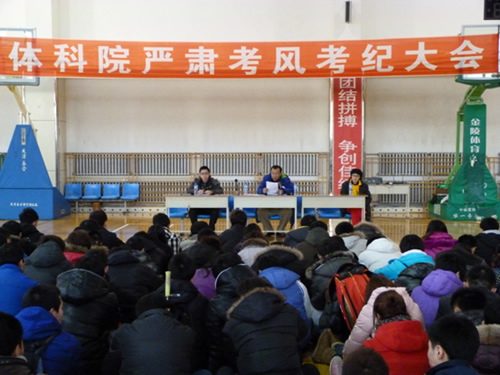 期末考试即将临近,为给体科院学生营造一个良好的考试环境,让大家诚信应考、考出水平,12月23日,体科院召开严肃考风考纪动员大会,体科院全院学生参加了大会。