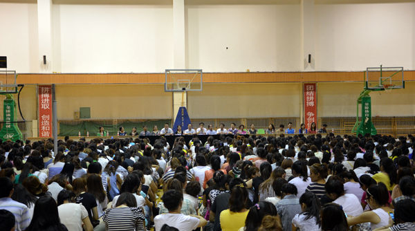 8月27日,西语学院举行2011级学生开学见面会暨入学再教育活动。西语学院院长姜涛、党委书记姜玉洪、各副院长、系主任、教授代表、全体行政工作人员和2011级987名同学参加了会议。