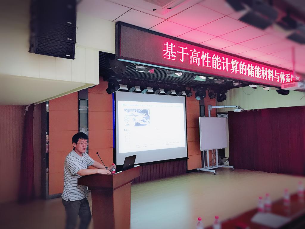 报告中,周震教授首先阐述了新型储能材料的发展历程和需求背景。他认为,以锂离子电池为代表的新型储能材料与器件在清洁能源发电、电子数码产品和电动车辆等领域的应用日益广泛,并且储能效果与安全性能具有同等重要的意义。能源的存储与转化是新能源技术的关键。由于超级计算机的发展,科研人员可以在高性能计算的指导下,紧密结合实验,加快储能材料与器件的创新进程。在报告中,周震教授总结了课题组近年来在通过高性能计算与实验结合研究二维锂/钠离子电池材料、提出CO2(CO32-)电催化转化储锂新机制并在此基础上构建可充电Li-CO2电池储能新体系的研究进展。周震教授课题组的研究成果为设计合成新型储能材料与器件提供了新思路和新方法。在报告结束后的提问、研讨环节,周震教授就参会师生感兴趣的科研问题进行了详细耐心地解答,周教授平易近人的人格魅力和严谨求实的治学态度给广大师生留下了深刻的印象。