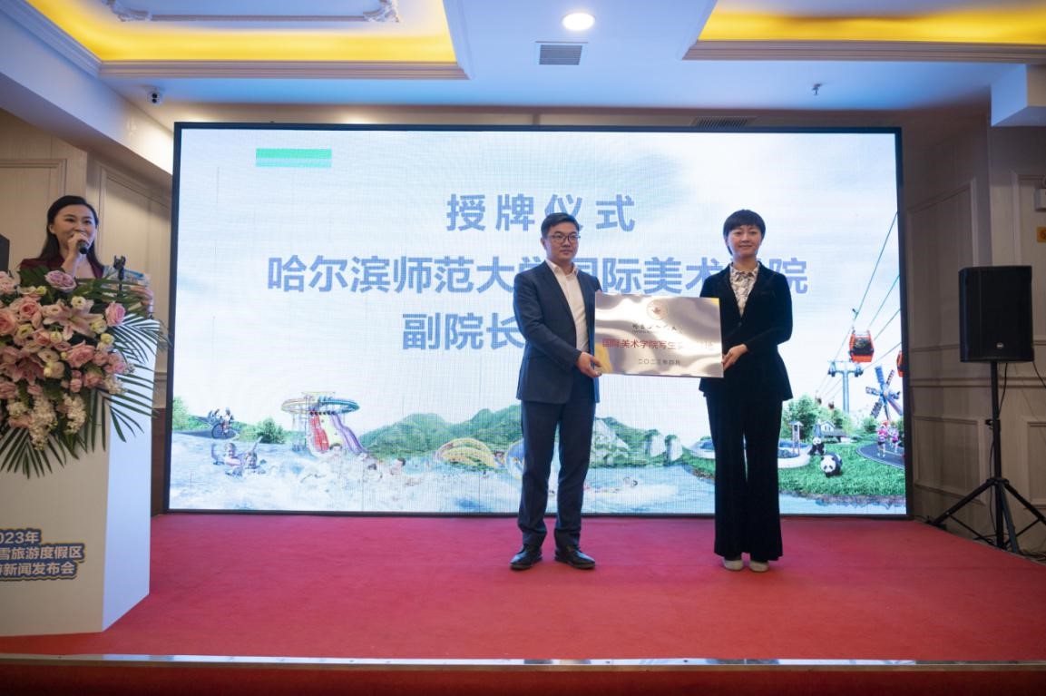 会上,哈尔滨师范大学国际美术学院授予亚布力滑雪旅游度假区“哈尔滨师范大学国际美术学院亚布力写生基地和实践基地”,并举行了授牌仪式。