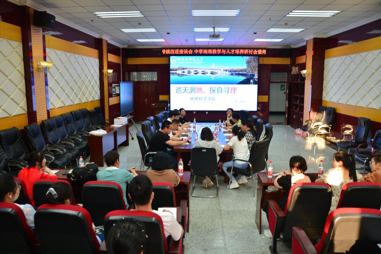 会议由地理科学学院教学院长张玉红主持,来自省内大庆实验中学、呼兰一中等25所中学的28名教师代表、地理科学学院教师代表和部分师范专业学生代表出席此次会议。