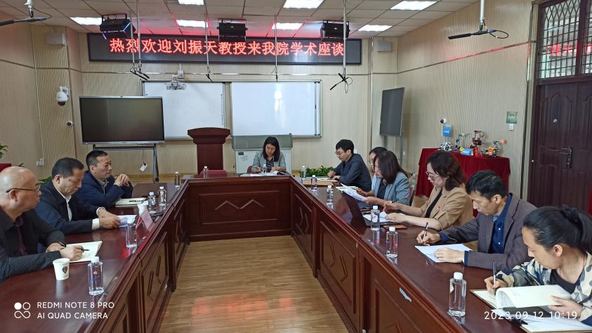 刘兆华书记首先对刘振天教授的莅临表示热烈的欢迎,陈云奔院长向与会人员隆重介绍了刘振天教授,对本次学术座谈会的目的和意义做了说明。