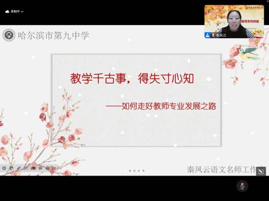 (李玉/文)10月22日下午,教育科学学院邀请了哈尔滨市九中语文教研组组长秦凤云,在腾讯会议平台为全校教育专业博硕研究生举办了2023-2024学年度第二期“龙江名家谈教育”讲座,本期讲座由教育管理专业领域负责人李玉主持。