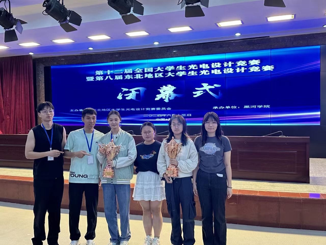(刘铭/文)第十二届全国大学生光电设计竞赛东北赛区暨第八届东北地区大学生光电设计竞赛现场决赛(路演)于6月10日—13日成功举行(由黑河学院承办)。报名参赛的包括东北三省的48所高校,共1268支参赛队。经过初赛评审与决赛路演,我院共10支队伍获奖,其中3支队伍获得东北地区赛一等奖(指导教师分别为孙文军、姚成宝、张伟光),7支队伍获得东北地区赛二等奖(指导教师分别为孙文军、荣宪伟、冯立峰、刘铭、李明、尹燕宗、张子锐),获奖率为53%,高于竞赛平均水平(50%)。