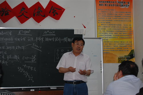 5月25日下午,物理与电子工程学院在理化楼509室举行了“学术前沿报告会”讲座。此次讲座邀请到校党委副书记、校长王选章教授担任主讲,报告会由物理与电子工程学院张喜田教授主持。出席报告会的人员有物理与电子工程学院领导、青年教师及研究生等。