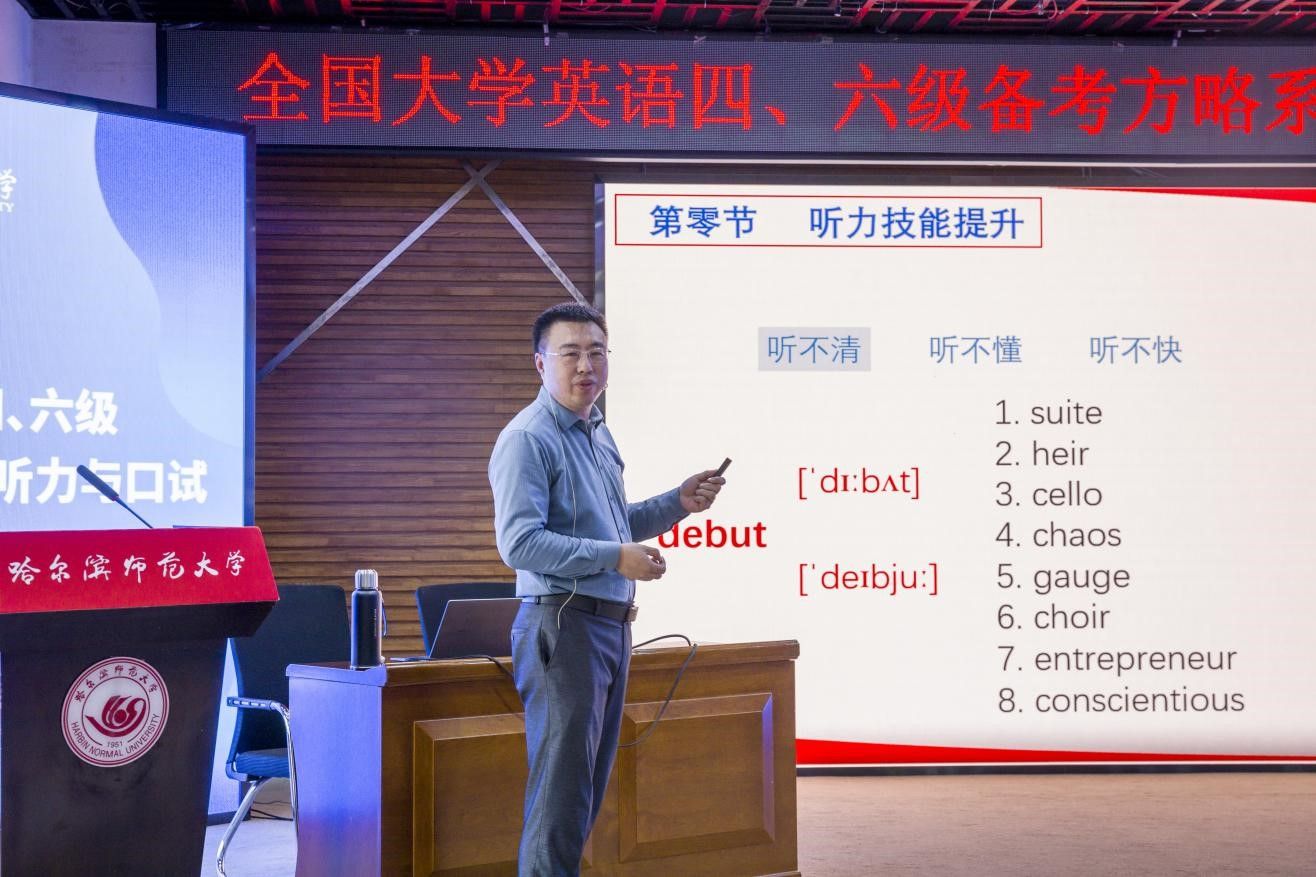 针对我校学生听力与口试技能普遍薄弱的问题,11月13日下午,教务处联合西语学院在梦溪报告厅举办了2024年第四场(本学期第二场)全国大学英语四、六级备考方略系列公益讲座。来自全校各学院的300多名学生参加本次讲座。教务处和西语学院主要负责人出席讲座。
