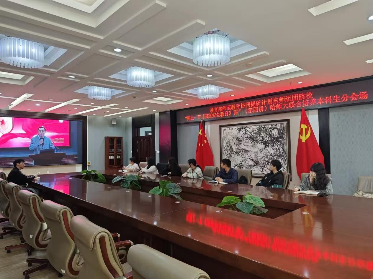 为加强学生国家安全教育,教育部师范教育协同提质计划东北师范大学组团院校,于近日邀请东北师范大学政法学院副院长、博士生导师詹欣教授,以线上线下相结合的方式,开展“同上一节《国家安全教育》课”(第四讲)活动。我校在行知楼1015会议室设立分会场,教务处相关同志,协同提质计划伊犁师范大学与我校联合培养的本科生集中线上参会。各学院设立分会场,大一年级新生、国家安全教育虚拟教研室全体成员,我校总计6200余人参加此次活动。