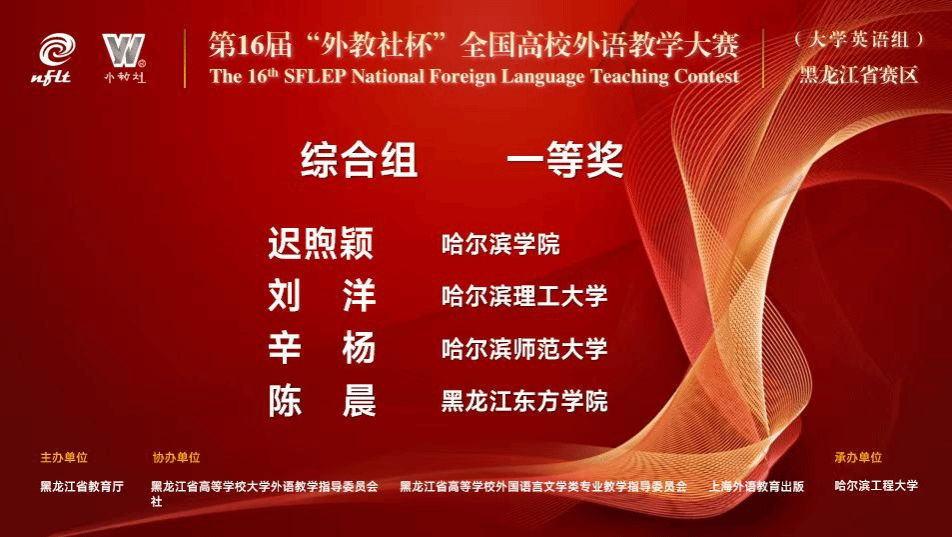 为深入贯彻党的二十大精神,积极践行《教育强国建设规划纲要(2024-2035)》,通过以赛促学,以赛促教,推进全省高等外语教育高质量发展,5月24日,由黑龙江省教育厅主办的第十六届“外教社杯”全国高校外语教学大赛黑龙江赛区总决赛圆满落幕。经过激烈角逐,我校选派参赛的西语学院副教授辛杨凭借扎实的基本功,出色的教学设计与创新实践,从进入复赛的33名选手中脱颖而出,荣获综合课组全省一等奖。