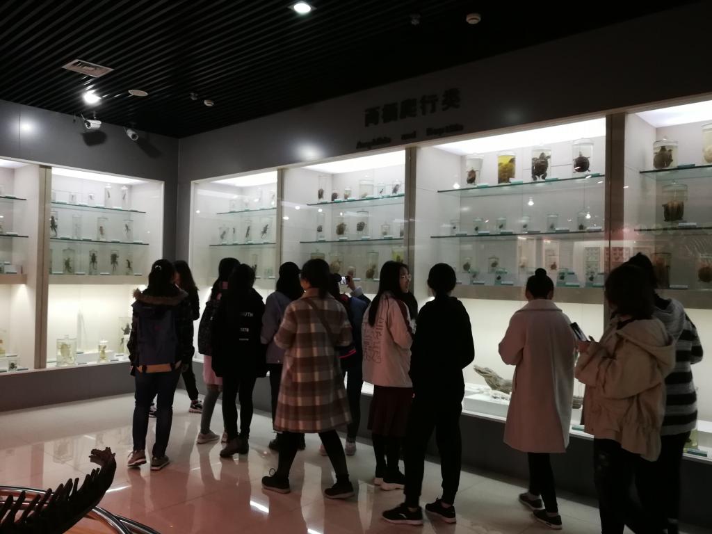 入馆后,参观的同学们分为5个小组,在引导员的带领下,结合专业特点,实地学习了动植物的有关知识。动物植物馆内藏品丰富,小到蝴蝶、昆虫,大到老虎、恐龙、蝗鱼等标本众多,每一个标本都栩栩如生。展厅中央的恐龙化石更是给同学们留下了深刻的印象,让同学们学习到了生物进化的知识,感受到了自然的奇妙,使同学们对生物相关科学产生了向往,对以后专业课的学习产生了浓厚的兴趣。同学们随后还参观了文博馆,体会了博大精深的中华文化,和学校办学深厚的底蕴。