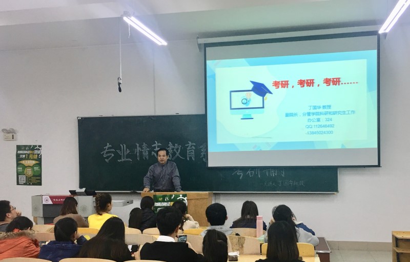 (潘玥/文)为进一步加强同学们对研究生入学考试的了解认识和把握, 了解考研和就业形势,激励同学们考研斗志,指导同学提早做好考研准备,11月8日晚,生命科学与技术学院在理工三号楼320室举办考研指导报告会,学院2016级学生参加了本次活动,副院长丁国华教授担任报告会主讲。