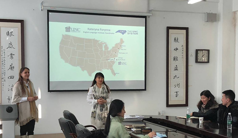 (张洋/文)12月18日下午,美国北卡罗来纳州大学教授Kateryna Forynna在西语楼211会议室做了题目为“Higher Education in USA”的讲座。西语学院专业教师、学科教学研究生等参加了本次讲座。