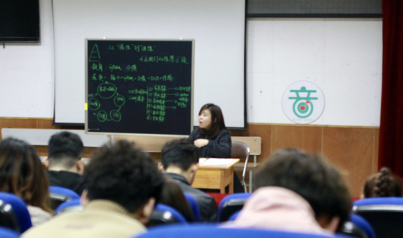 讲座中,孟璐首先询问了大家平时的练琴情况以及练琴时出现的问题,然后为大家剖析了器乐演奏学习中的误区及产生的原因,通过对“动机的保护、习惯的养成、与学琴相关的六种需要”所涉及的教育心理学的内容进行讲解,让同学们明白了为什么自己练琴的积极性不高及如何养成良好的练琴习惯以避免疲惫感和消耗感。