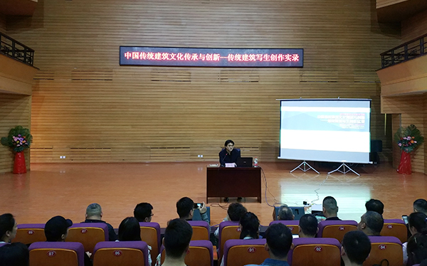 张红松教授作题为《中国传统建筑文化传承与创新——传统建筑写生创作实录》的专题报告。张红松通过大量写生作品和踏查实录,讲解他在川、滇、黔、桂、皖等地中国传统建筑文化传统建筑写生创作过程,讲座中还将中国传统建筑对比了走访俄罗斯、法国、西班牙、荷兰等欧洲国家关注的历史文化建筑特色,通过写生创作透视中西方传统建筑构造及文化内涵,引导师生关注中国传统建筑文化的传承、保护与创新,启发师生写生创作热情。