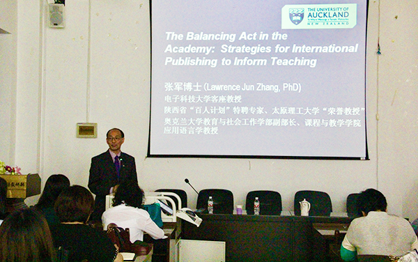 (王新钰/文)受我校公共英语教研部/外语教育教学研究中心邀请,5月15日上午,新西兰奥克兰大学教育学部副部长、应用语言学教授、博士生导师张军,在西语楼109会议室做了题为“如何教研相长—SSCI国际期刊论文发表策略”的学术报告。公共英语教研部领导、全体教师和研究生,我校相关院系以及省内其他高校的部分师生参加报告会。公共英语教研部副主任才亚楠教授主持报告会。