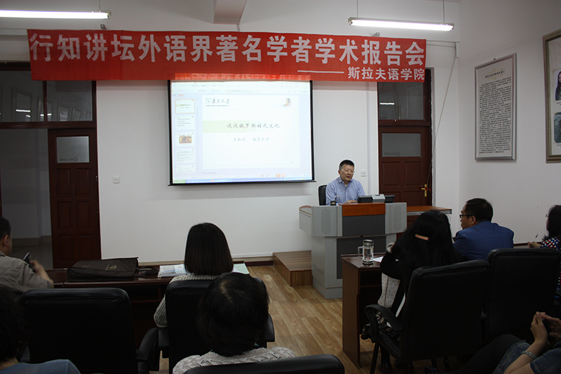 (王丽欣/文)6月5日下午,南京大学王加兴教授在我校社科楼903会议室作了题为《谈谈俄罗斯姓氏文化》的精彩学术报告,斯拉夫语学院教师、研究生与部分本科生济济一堂聆听了报告。报告会由斯拉夫语学院院长赵秋野主持。