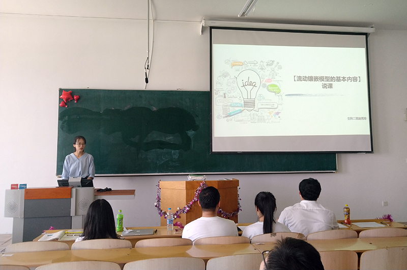 决赛中,郭东林宣布比赛开始并简单介绍了比赛规则,她要求评委老师从教材分析、教态表达、板书设计、环节设计、课堂感染力五方面对参赛同学进行严格细致的打分,并选手们做出最中肯的评价与建议。比赛开始,进行决赛的同学自信大方地站在讲台上,他们采用ppt教学,尽他们最大的努力展现自己最好的状态。参赛同学全部展示完毕后,评委们对每一位同学的表现给予了充分的肯定,同时也指出了他们的不足并提出建议,希望他们在今后的比赛中可以做的更优秀。