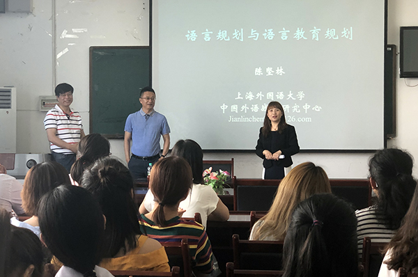 (王琳琳/文)6月21日。上海外国语大学博士生导师陈坚林教授莅临西语学院进行学术讲座,讲座在西语楼527室进行。西语学院院长顾世民教授、党委书记李贵彬、副院长王晓丹以及学院语言学方向教师、外国语言学及应用语言学方向和学科教学(英语)专业研究生参加本次题为“语言规划与语言教育规划”的讲座,顾世民教授致欢迎辞,讲座由副院长王晓丹主持。