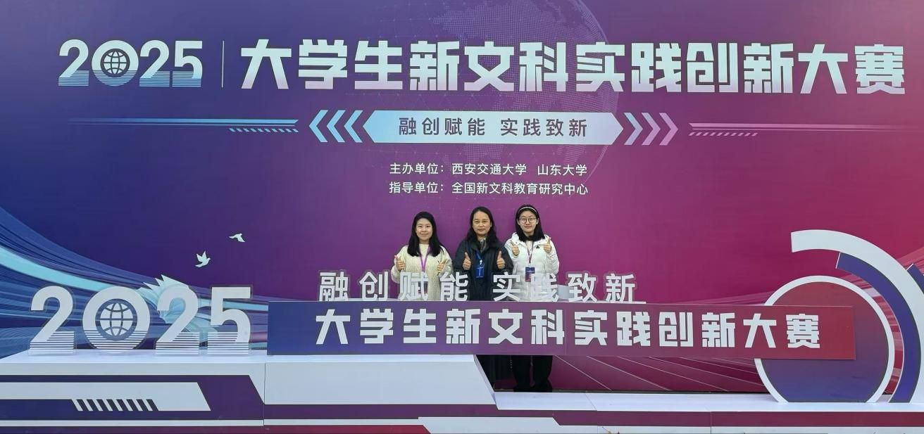 11月28日至30日,由全国新文科教育研究中心主办、山东大学与西安交通大学联合承办的2025年大学生新文科实践创新大赛全国总决赛在西安交通大学兴庆校区举行。经过激烈角逐,由美术学院教师王慧指导、学生崔鑫焕等完成的《艺媒新声队》项目荣获全国银奖。由教师于猛指导、学生李月娇主持的项目《拓新队》,教师杨丹指导、学生张海丫主持的项目《公共法律服务队》,以及教师于海礁指导、学生李冰洁主持的项目《一剪裁云纳古今》,获得全国铜奖。