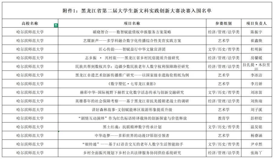 展望未来,我校将以此次大赛为契机,持续深化新文科实践教学改革,进一步推动专业教育与社会实际需求深度契合,鼓励更多学生投身创新实践,提升文科育人质量和社会服务能力,为培养面向龙江振兴发展需求的高素质、复合型、实战型文科人才贡献更多哈师大力量。