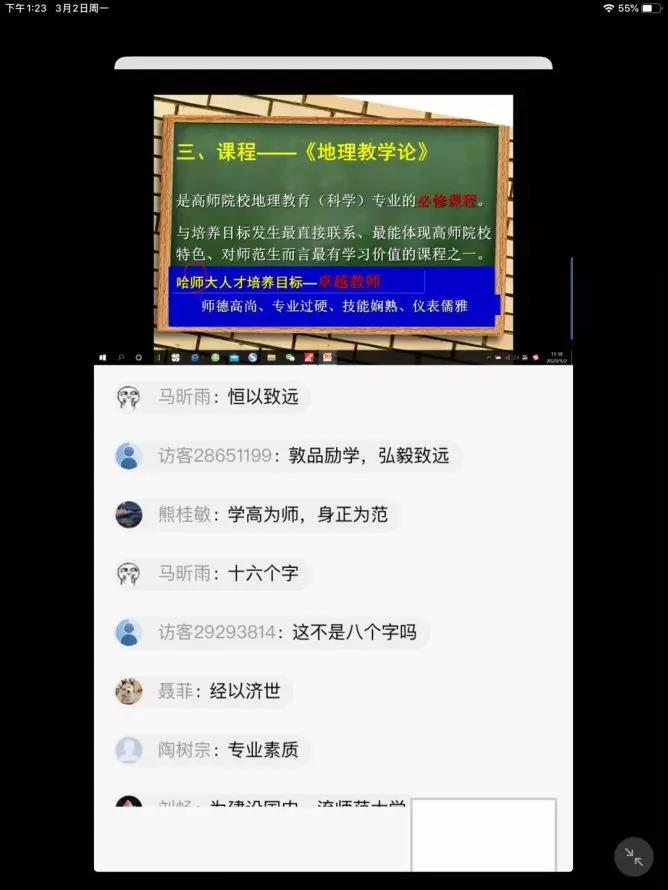 特殊时期的疫情大考赋予了教育信息化新的使命,推动教育理念更新、模式变革、体系重构势在必行。按照《哈尔滨师范大学2020年春季学期延期开学期间本科教学方式调整工作方案》精神,我校理论课按课程表开展网络教学。但是网络教学终究是形式、是辅助,内涵和核心始终是坚持学生为中心的成果导向教育理念和教师扎实过硬的专业教学理论素养。公共课教师此次更是遭遇了严峻的挑战,第一次全面尝试线上教学就要面对全校学生的庞大受众群体,既要分秒必争学习平台技能,又要完善多个课堂的“空中”教学。公共英语教研部非常重视信息技术与传统课堂教学的深度融合,疫情防控期间举办了两场线上教学实用讲座。斯拉夫语学院、东语学院面面俱到,帮助任课老师尽快适应线上课程教学。开学第一天保质保量完成线上教学任务,尽显教师们扎实过硬的教学功底。