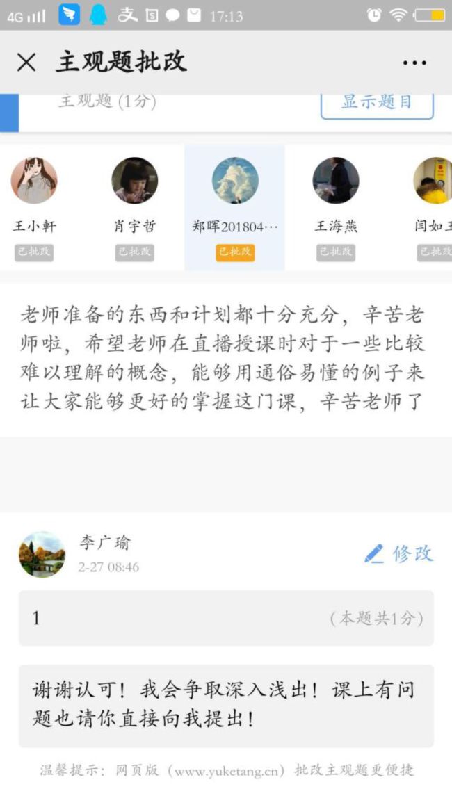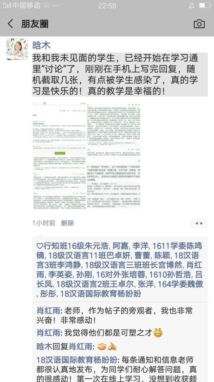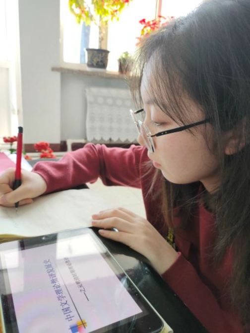 2017级汉语言文学八班张馨:“线上课堂让我们如同身在教室,感谢老师的精心准备。”