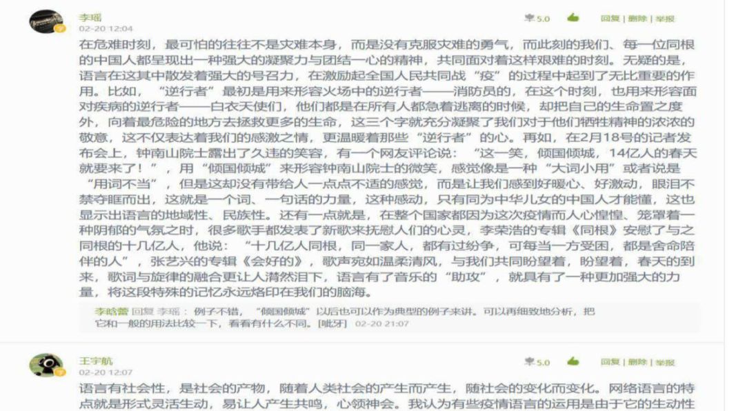 李晗蕾老师:“疫情防控期间,我们正在经历的在线教学将是中国教育史上第一次重要变革。教师和学生共同学习现代化的信息技术,更新教育理念,把学生自主学习作为师生共同的目标,关注疫情,关心社会,潜心学习,以实际行动声援在病疫中奋战的人们!”