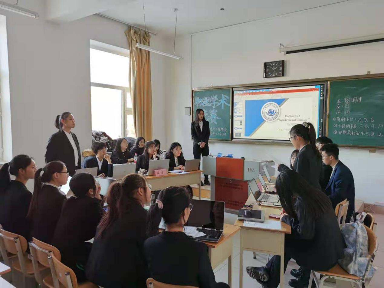 本次比赛在三个赛场进行,每个场地有3支队伍。此次竞赛采取轮换制,从不同角度深入分析问题。参赛同学充分利用课余时间对竞赛所选题目进行了认真严谨的理论分析和实验验证。比赛过程异彩纷呈,同学们以PPT的形式对自己的研究成果进行了深入的讲解与分析。赛场上,参赛同学的理论理解到位,分析思路清晰,阐述重点突出,表现出了积极的竞技状态和浓厚的参赛热情,为评委和观众呈现了一场精彩的物理思维碰撞的盛会。经过激烈角逐,拉普拉斯兽队荣获第一名,耶斯莫拉队、知行合一队分获第二、三名。
