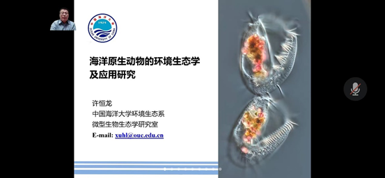 为浓厚学术研究氛围、拓宽科研人员学术视野,提高研究生学术思维和素养,5月13日,生命科学与技术学院邀请中国海洋大学生命学院教授许恒龙在线上作题为《海洋原生动物的环境生态学及应用研究》的学术报告,学院院长、副院长、师生代表70余人参加此次报告。
