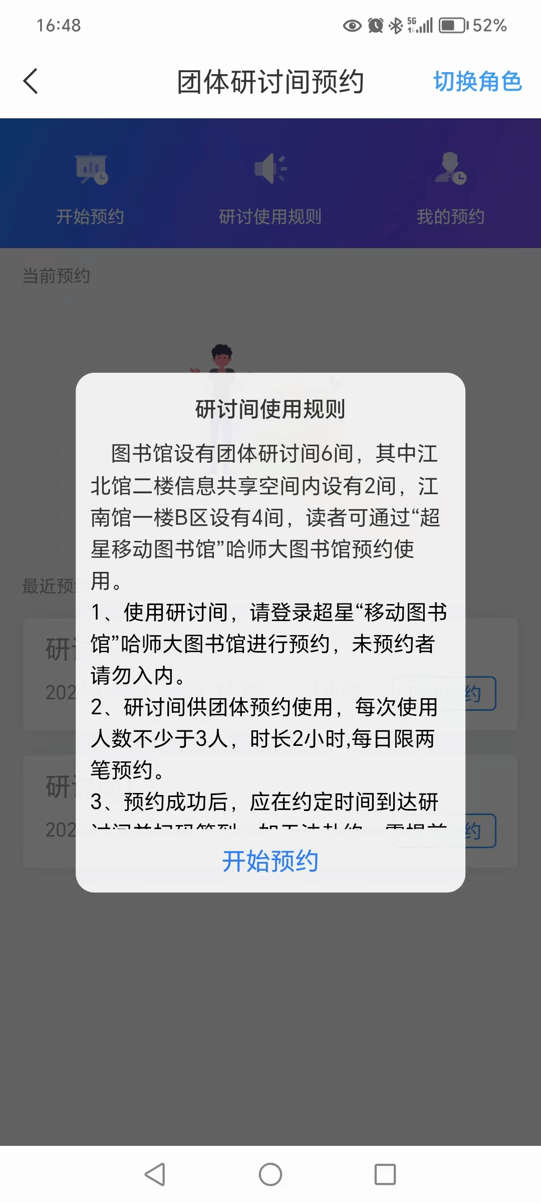 5. 若未超出预约时间20分钟但签到总人数少于预约人数,则讨论间可以继续使用,记违约1次。
