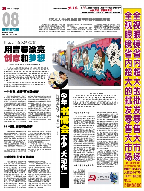 为迎接校庆60周年,由黑龙江现代文化艺术产业园区主办、美术学院承办的“锦宸杯”首届大学生手绘涂鸦创意大赛活动已近尾声,自活动开展以来受到了省内外多家媒体的关注。5月13日,黑龙江日报、生活报、哈尔滨视台《都市零距离》等新闻媒体进行了集中报道。