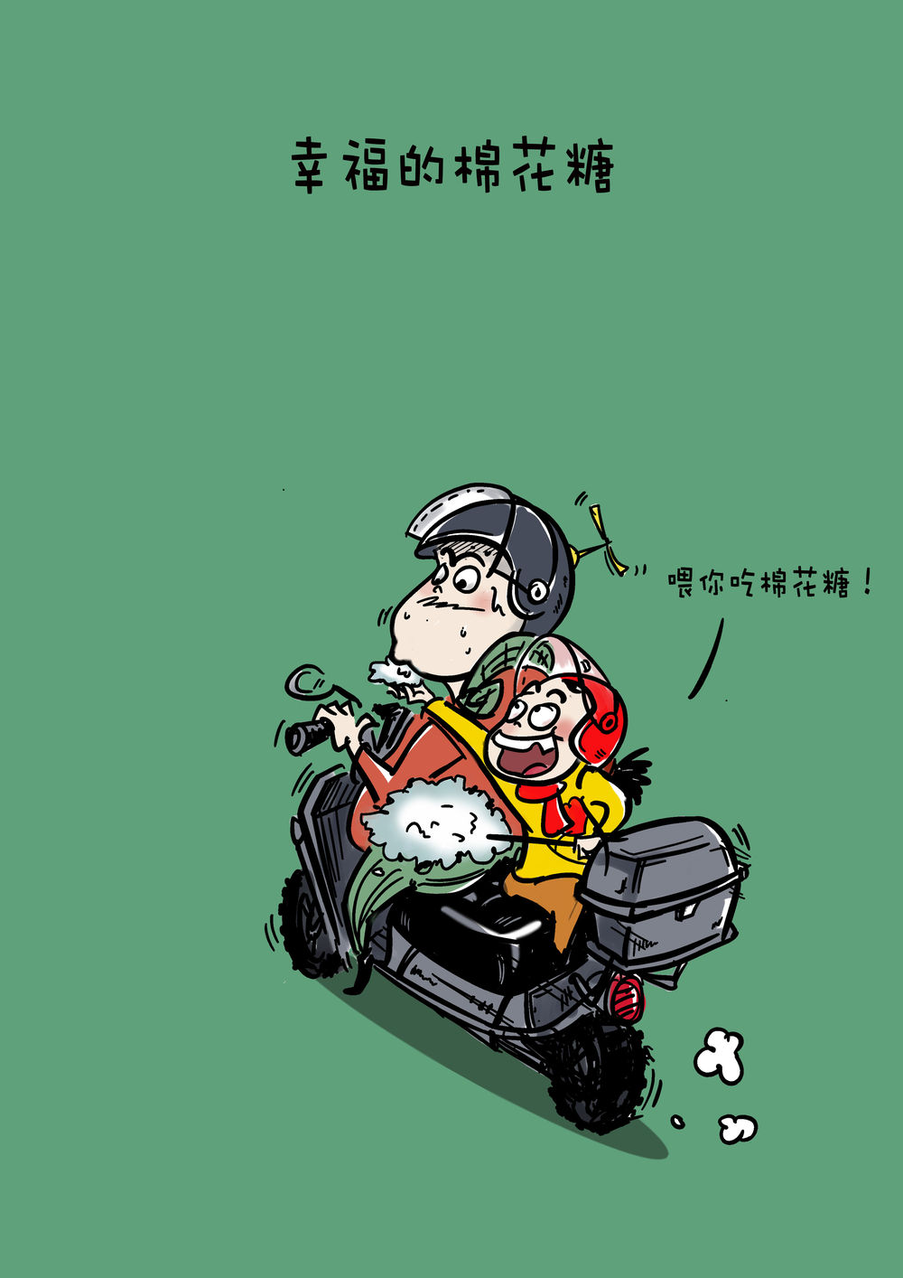 摩托车上吃一大口棉花糖