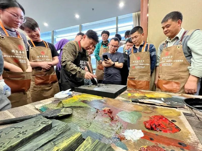 据介绍,学员们创作热情高涨,作品题材紧紧围绕时代主旋律,或是以名句格言为主题,催人奋进;或者是取材于历史故事,让人感受传统文化的魅力。在艺术样式上,学员们大胆尝试多样艺术手法和媒介材质,感受书刻艺术当下广阔的发展空间。本次展览展出的书刻作品内容丰富、形式多样,字法、刀法、章法、色彩高度统一,综合材料的应用大胆创新,作品极富视觉冲击力,很好地表达了书刻艺术继承与发展,创新与传承的辩证关系。