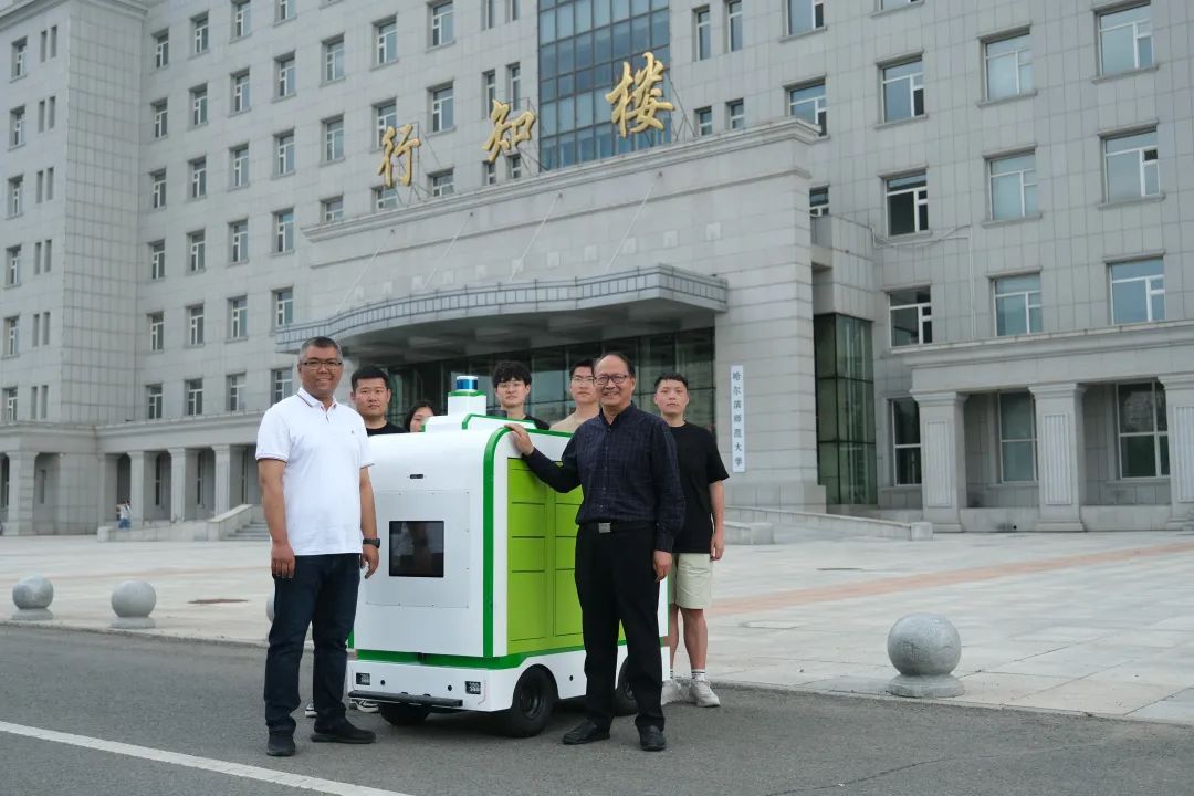 为解决实际问题,更好服务广大师生员工,由万鲁河教授领衔,组织科研骨干力量,联合哈尔滨工业大学、南方科技大学、深圳前海格致科技有限公司,自去年起进行智能无人配送车研发工作。经过近一年的技术攻关和反复测试,最终研发出这款智能无人配送车,并在哈师大投入使用。
