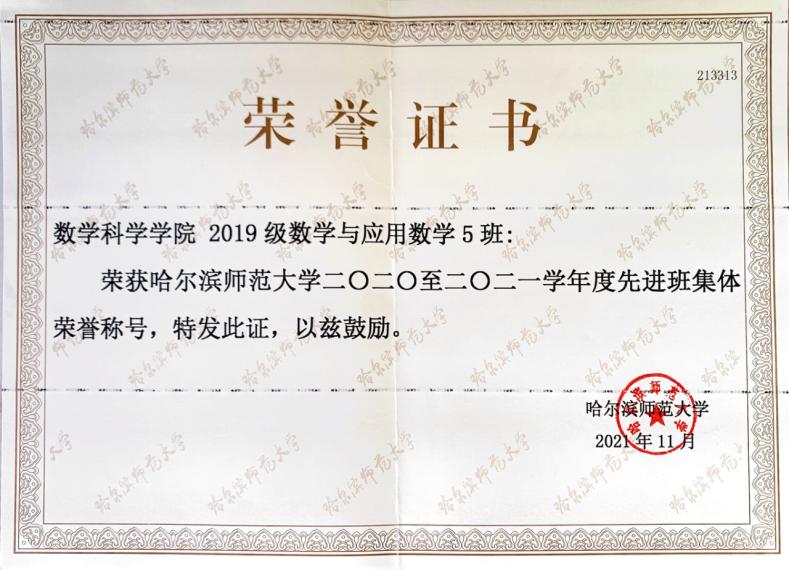 人总是环境的产物,正是因为处在一个充满友爱,充满力量的集体中,2019级数学与应用数学五班同学才能不断加强自身,不断向前!(哈尔滨师范大学)